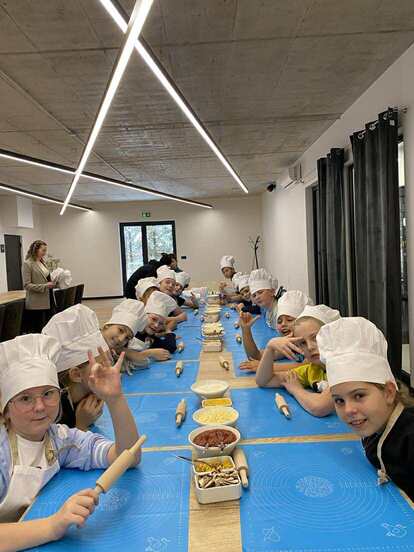 Najważniejszym punktem programu było przygotowanie i skomponowanie własnej ulubionej pizzy 🍕😍 pod okiem mistrza tamtejszej restauracji 👨‍🍳⭐, który przybliżył nam też historię tego przysmaku 📜🍕. Kilka minut w piecu 🔥⏱️ i na stołach pojawiły się pachnące efekty naszej pracy 🤤👏. Cóż to była za uczta 🥳🍽️.