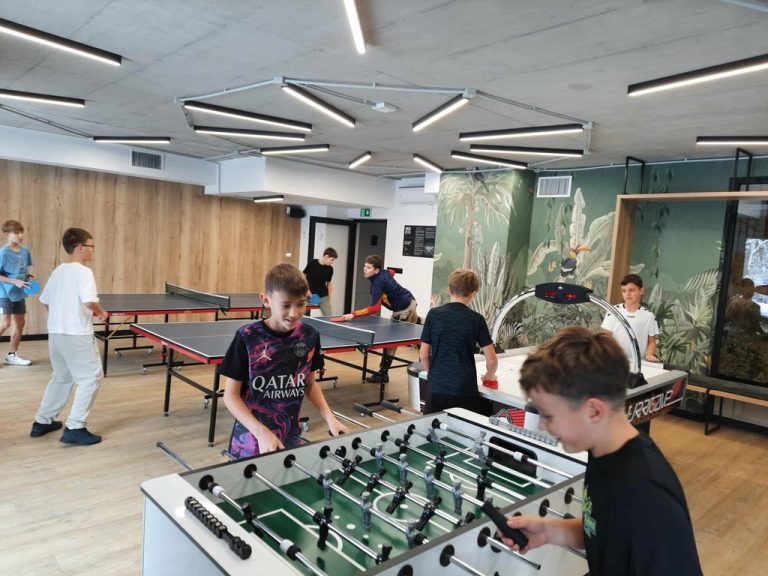 W ośrodku każdy znalazł coś dla siebie 🎯✨ – ścianka wspinaczkowa dla nieustraszonych 🧗‍♂️💪, boiska dla spragnionych gier zespołowych 🏀⚽️🤾 oraz cała gama gier: od bilarda 🎱, przez piłkarzyki ⚽️🤖, tenis stołowy 🏓 po kręgle 🎳. Ruchu, zabawy, śmiechu i radości było co niemiara 😆🎉💥.