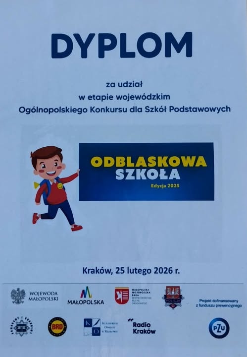 Otrzymaliśmy dyplom za udział i zaangażowanie w ogólnopolskim konkursie „Odblaskowa Szkoła 2025”!