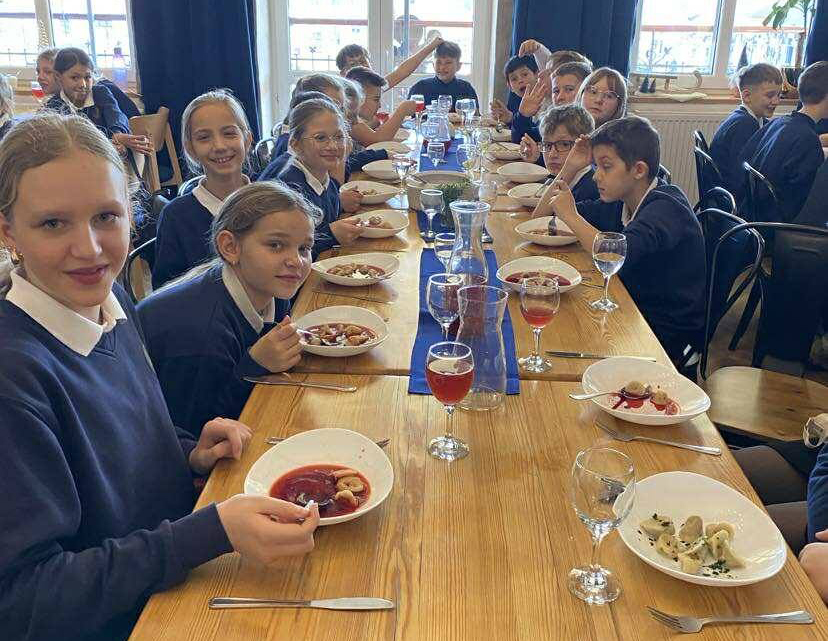 🎄Wspólny czas w Marysieńce🎄 W przedświątecznej atmosferze spotkaliśmy się wszyscy przy jednym, wigilijnym stole – uczniowie, właściciel szkoły Iwona Rams, pani dyrektor Agnieszka Weryńska-Kot, wychowawcy, nauczyciele oraz pracownicy szkoły. To był wyjątkowy czas, który na długo zostanie w naszej pamięci Prawie 180 osób wypełniło po brzegi restaurację Marysieńka na starosądeckim rynku. Było ciasno – ale …